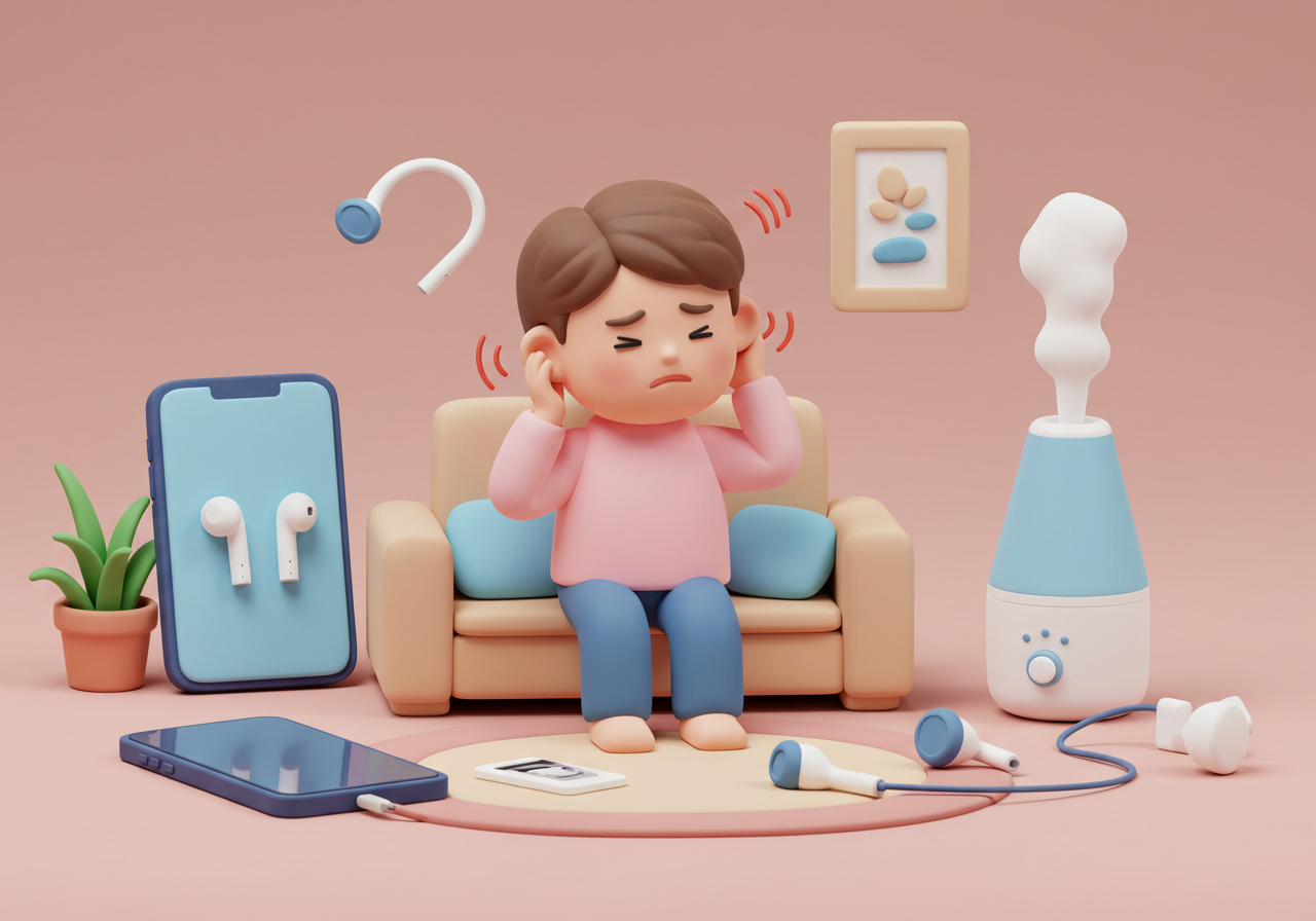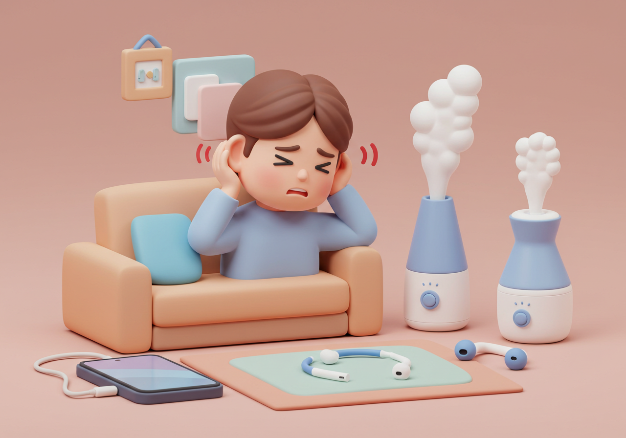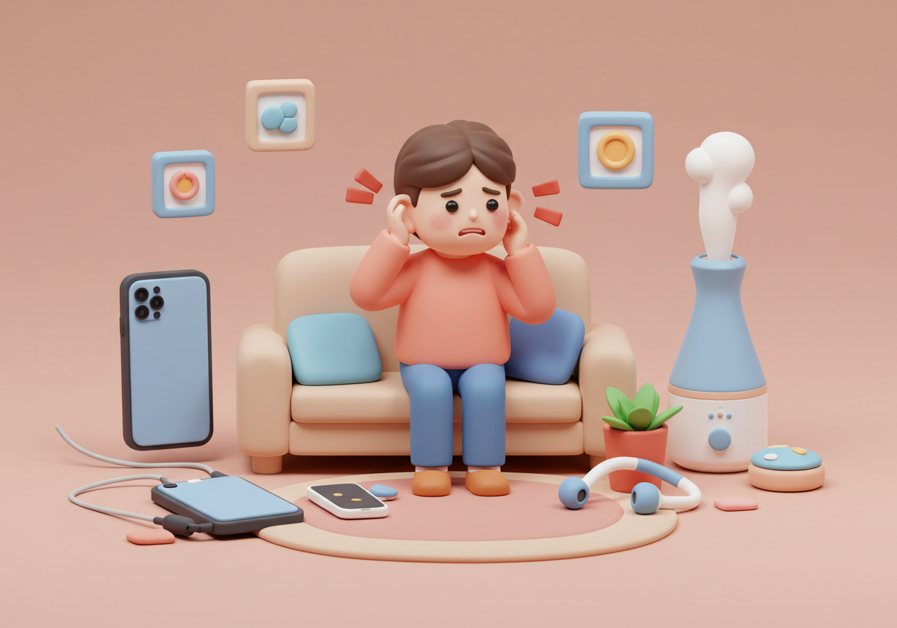 - 소리 치료 활용: 취침 시 백색 소음기나 자연 소리 앱으로 이명을 덮으세요.