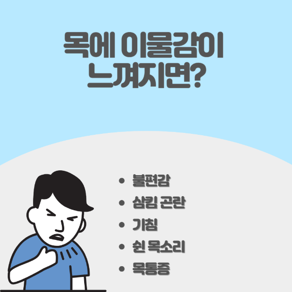 이물감이 며칠 이상 지속되거나 통증, 삼킴 장애, 호흡 곤란 등의 증상이 동반되면 의료진의 진료를 받아야 합니다.